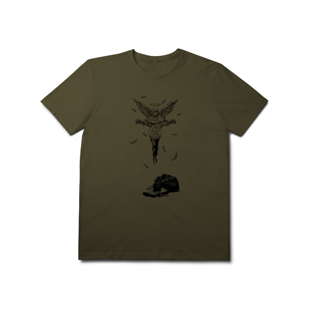 Uma arte que transborda emoção e espiritualidade dentro do universo de Gege Akutami. Esta estampa exclusiva retrata a impactante cena em que Hana Kurusu (Angel) paira majestosamente com suas asas e auréola, enquanto Megumi Fushiguro permanece prostrado abaixo. Com um traço fiel ao estilo dark manga, a peça captura a queda das penas e a atmosfera de redenção e tragédia. Perfeita para colecionadores e fãs que buscam uma peça de vestuário com profundidade narrativa e estética minimalista.