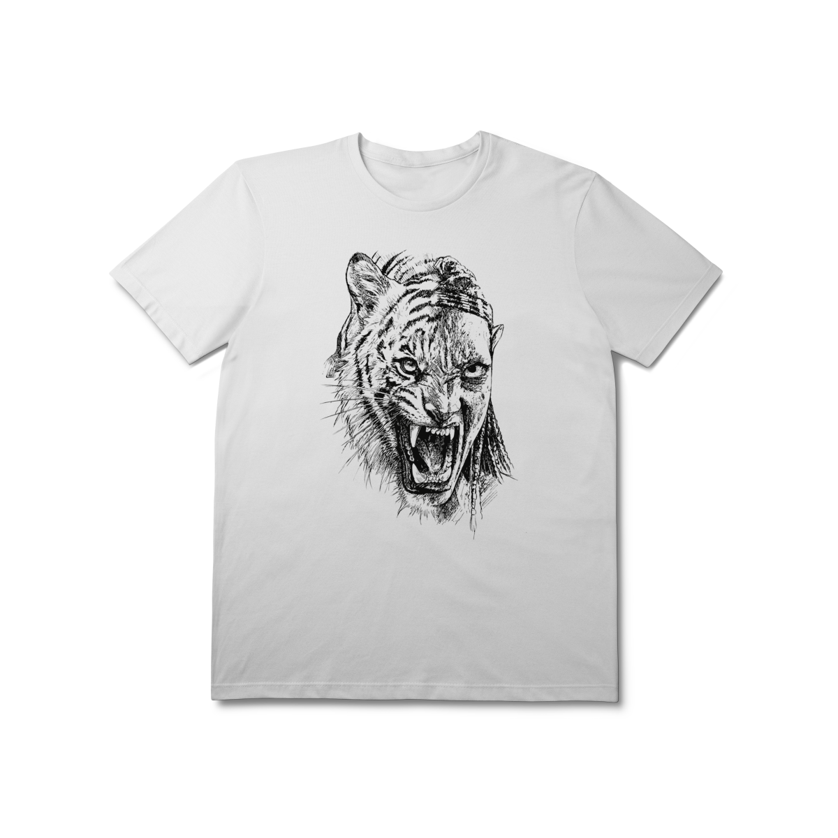 Uma representação brutal da dualidade entre dois mundos. Esta estampa exclusiva em preto e branco funde a face da guerreira Neytiri, do universo de Avatar, com a ferocidade de um tigre em posição de ataque. A arte explora o conceito de conexão com a natureza e o instinto predador, resultando em um visual de alto impacto e contraste. Ideal para quem busca uma peça de vestuário que une a estética dark com a grandiosidade da cultura pop.
