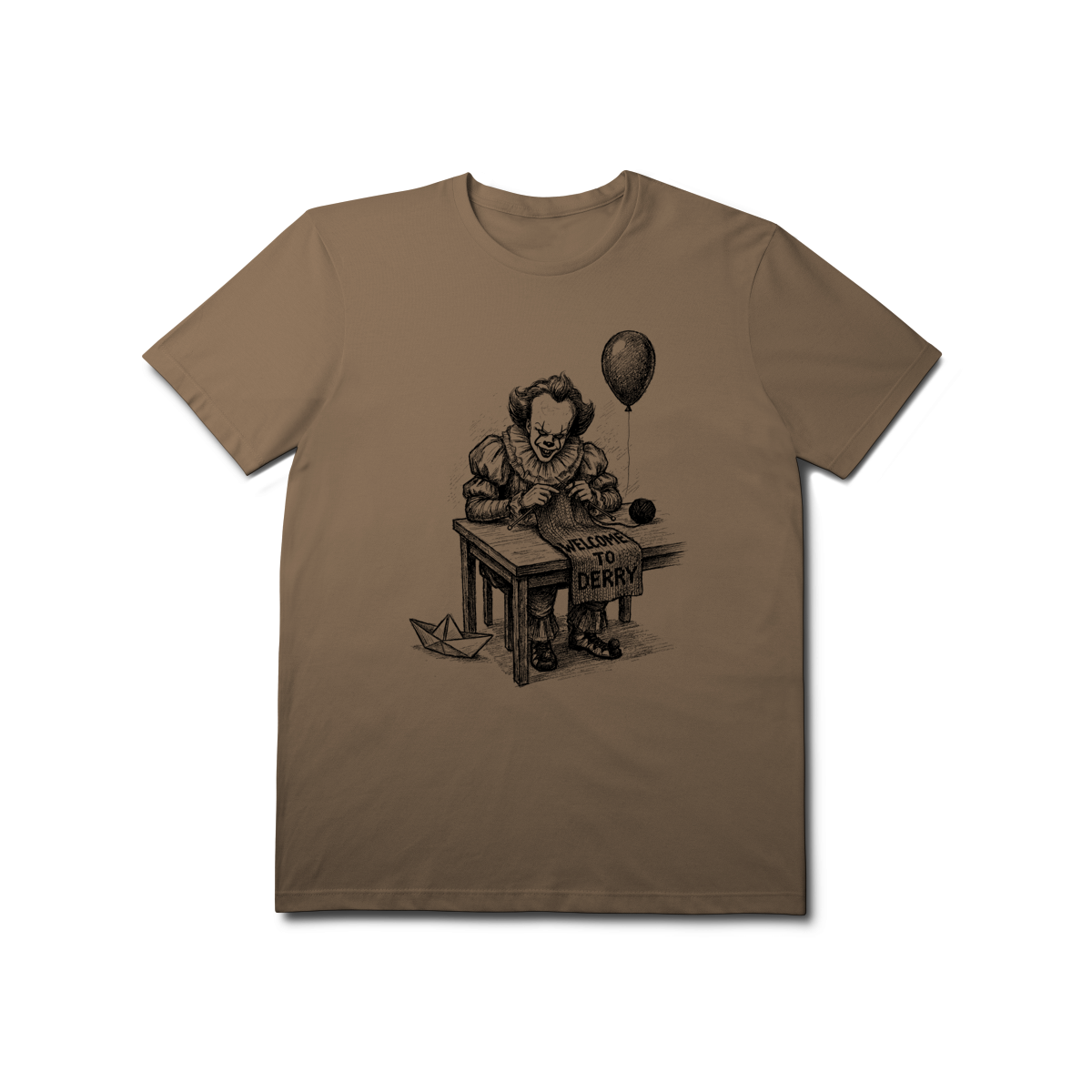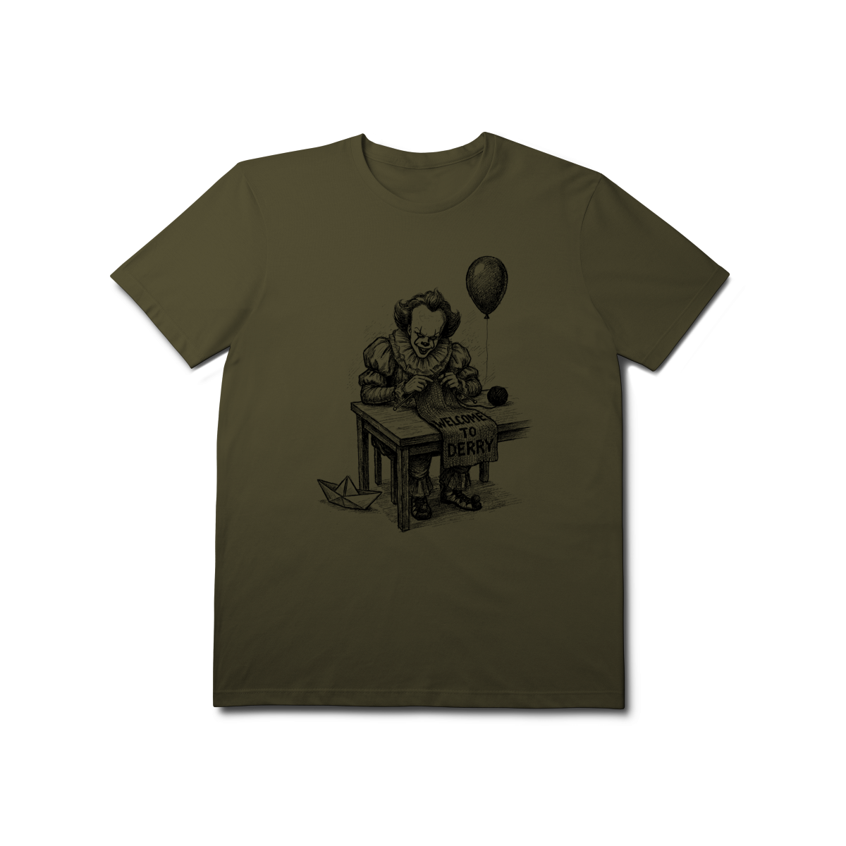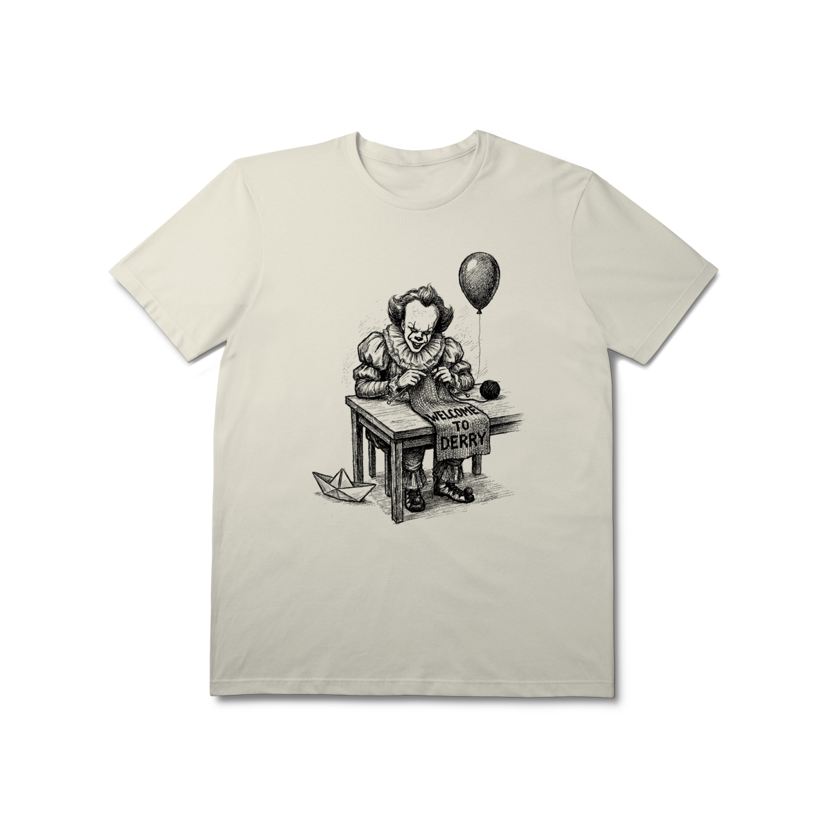 A trama do medo. Estampa inspirada no seriado 'Welcome to Derry'. O lado irônico e sombrio do terror clássico.